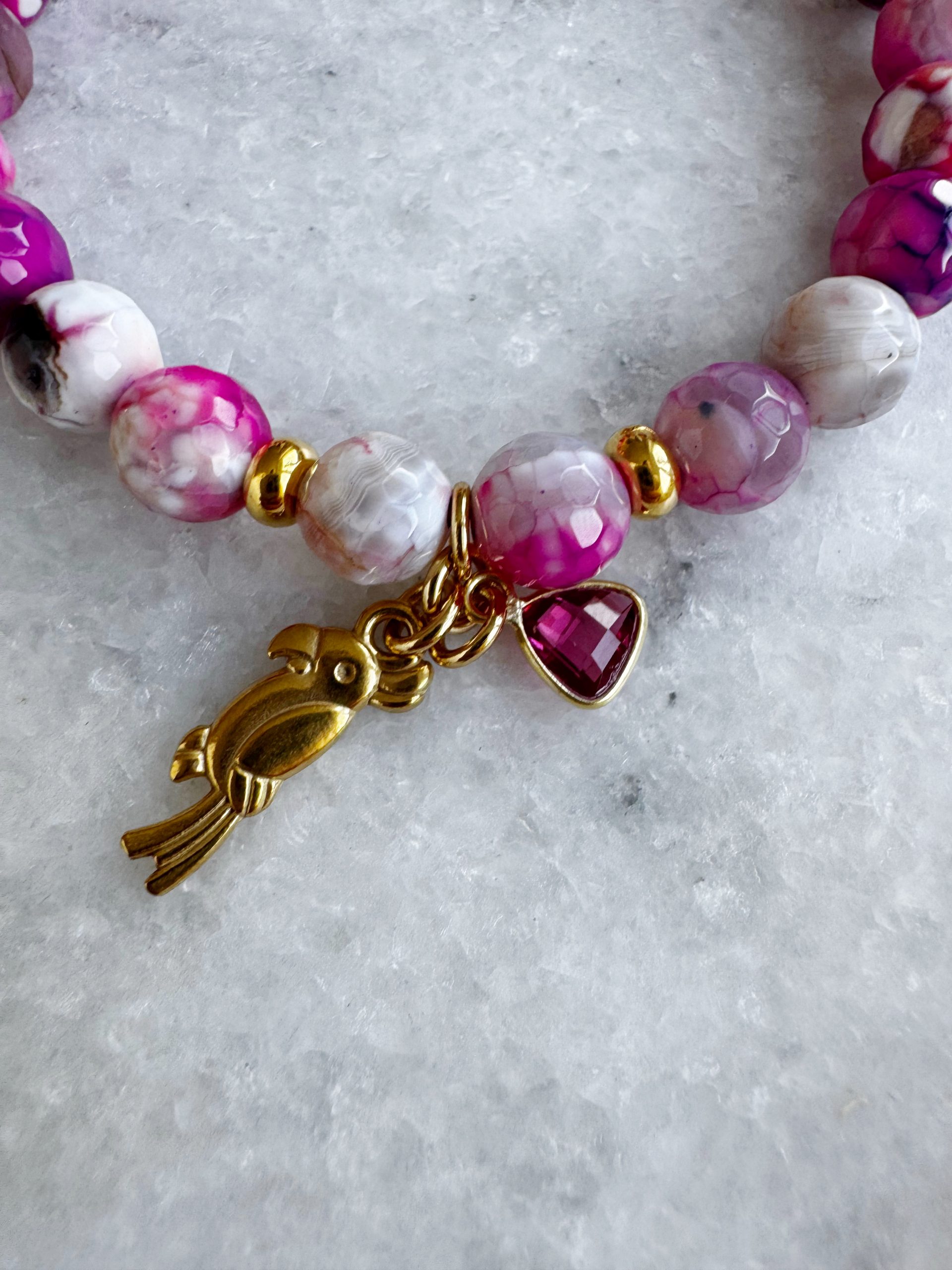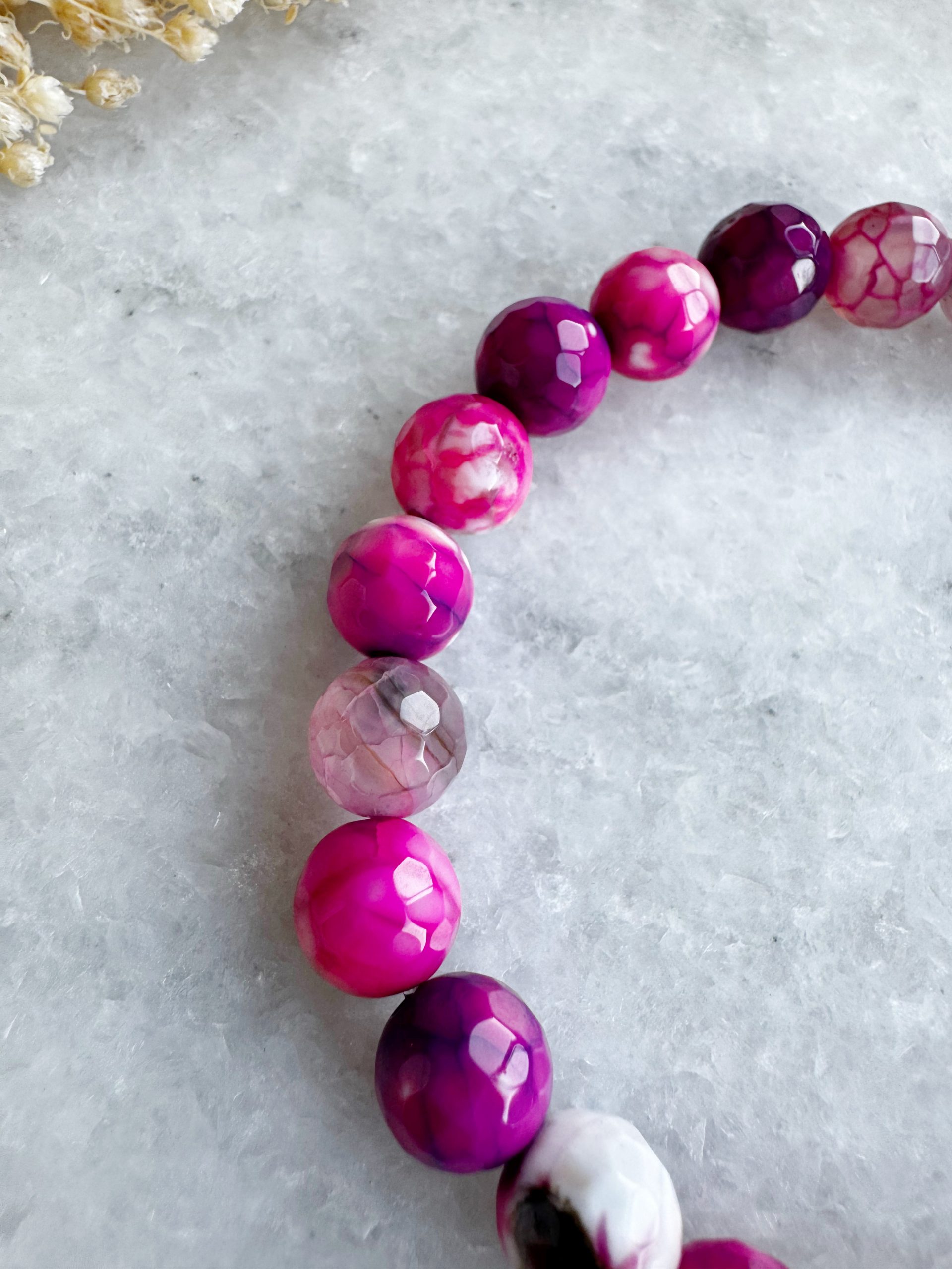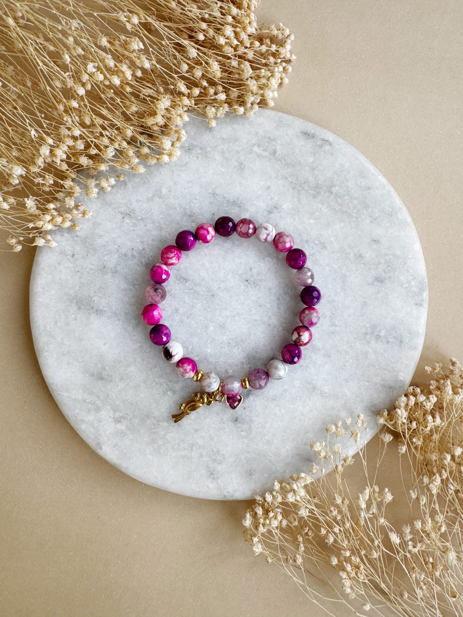 Berry wild in love: „The Happy Magenta“ aus facettierten Achat-Perlen kommt mit einem Anhänger aus Rubin und goldigen Details.