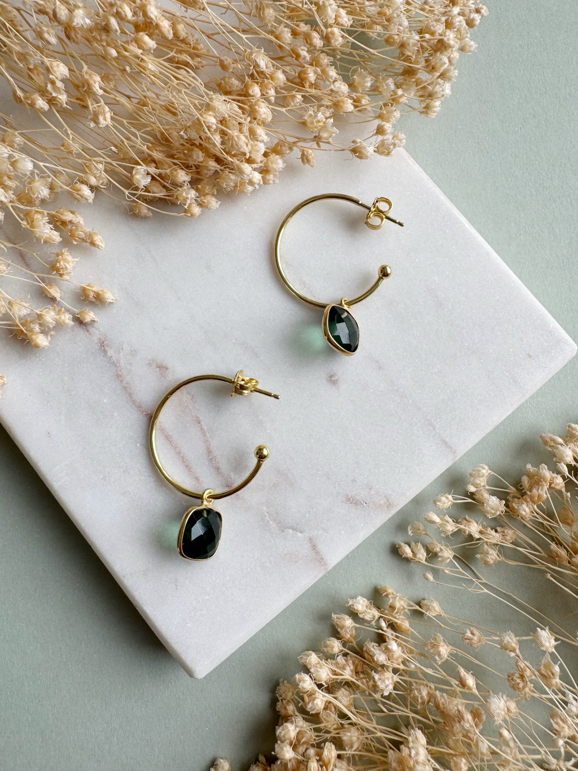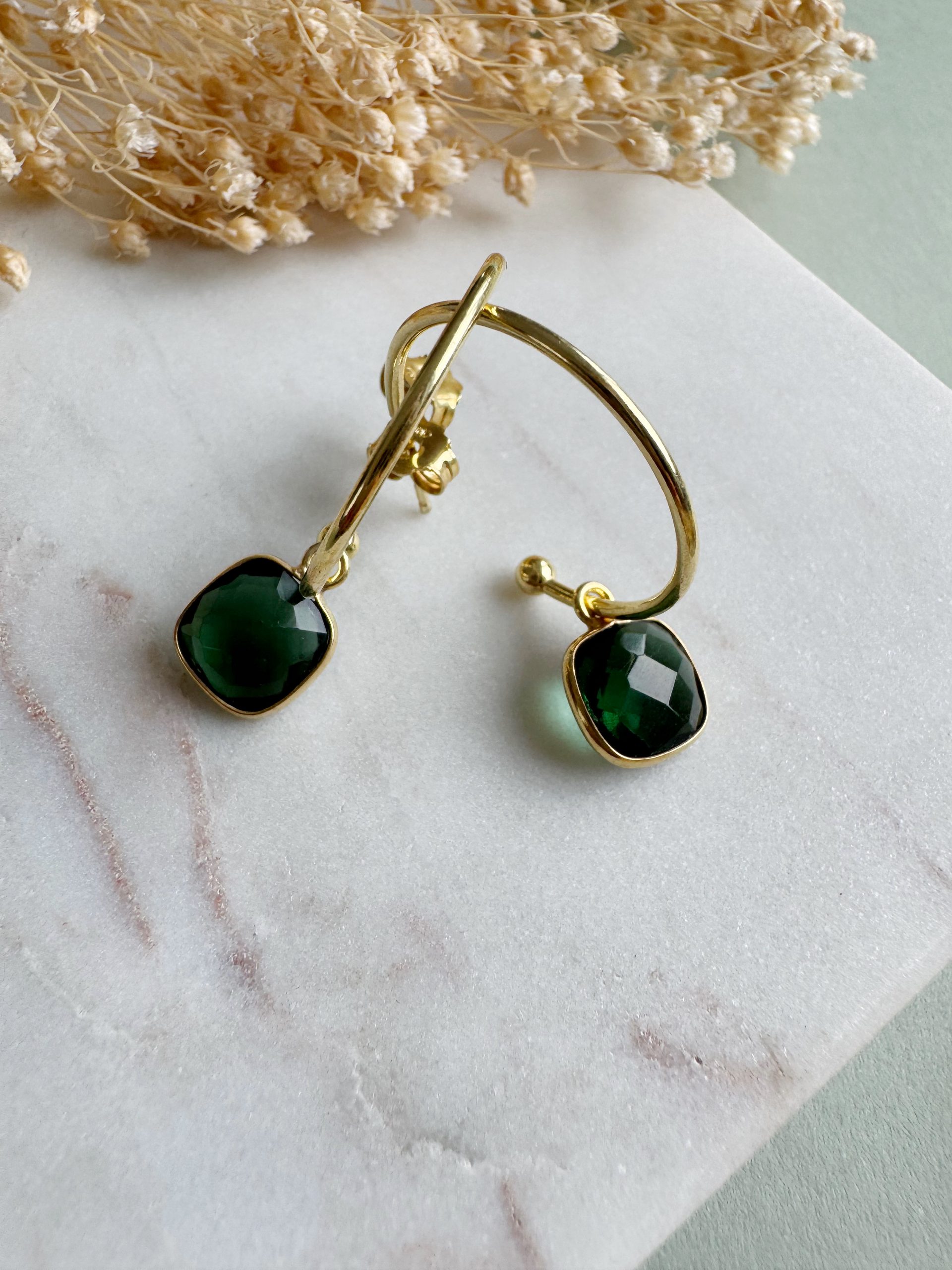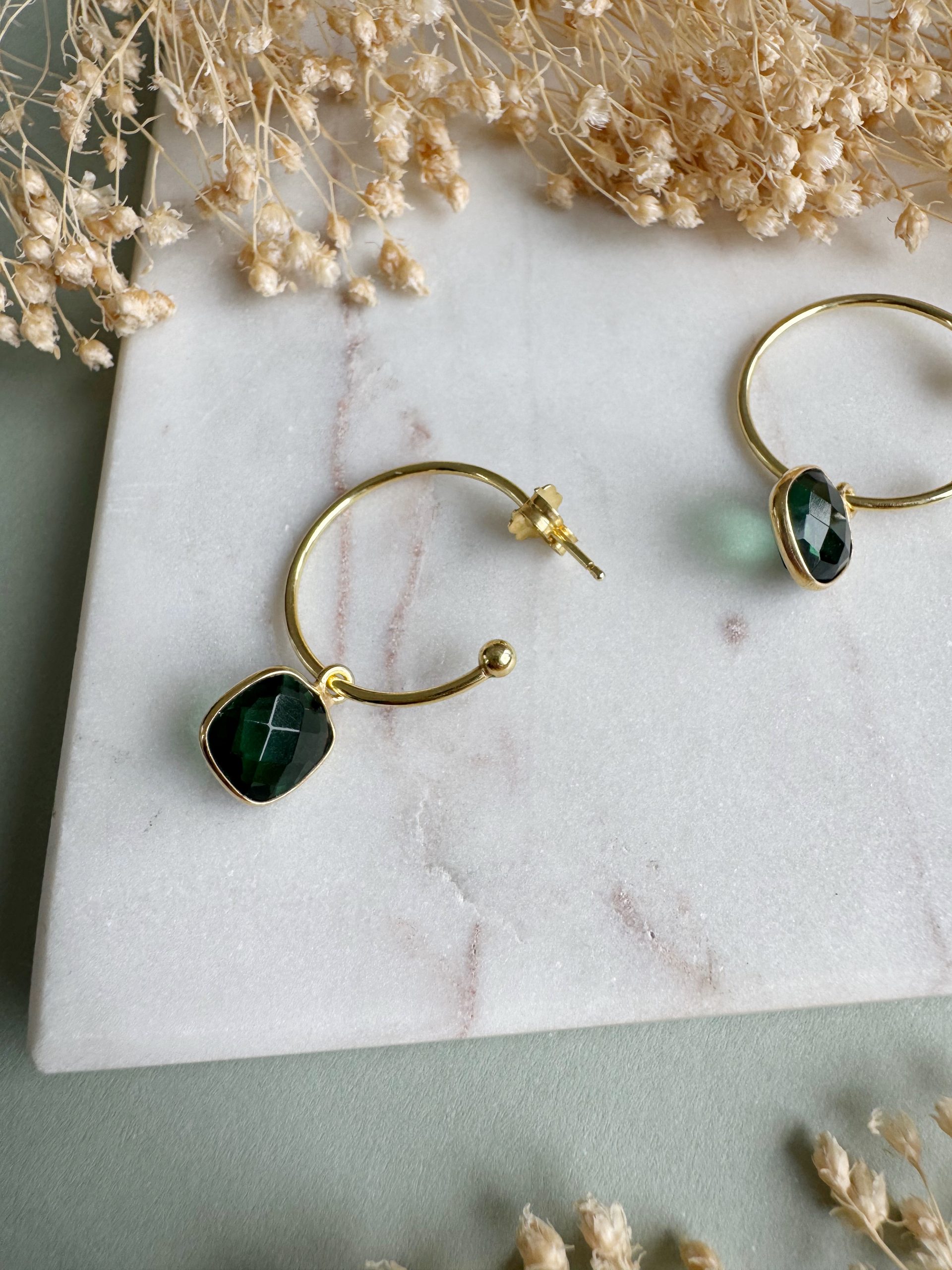 Love in Green: Vergoldete Creole aus 925er Silber mit einem Anhänger aus Smaragd.