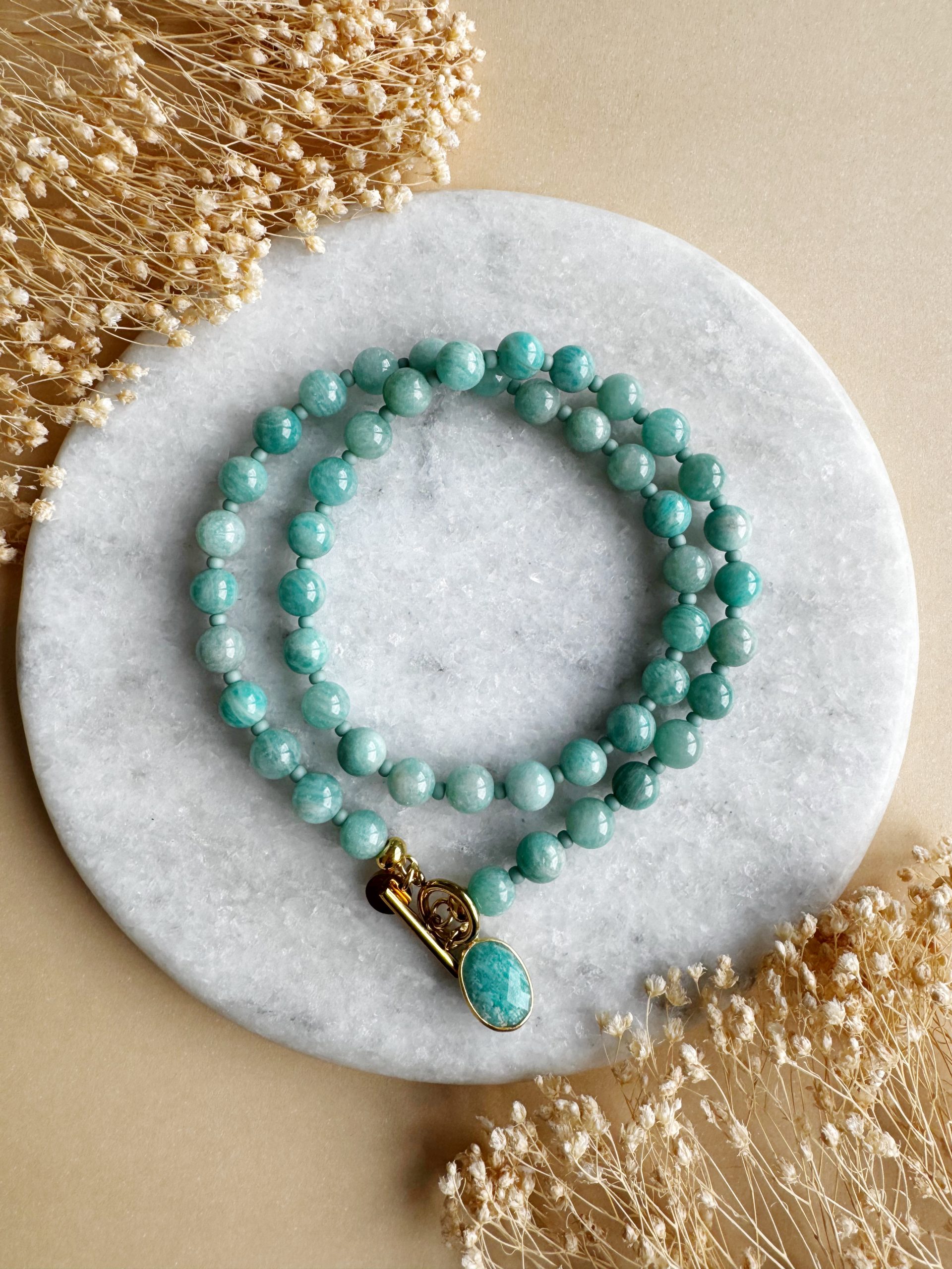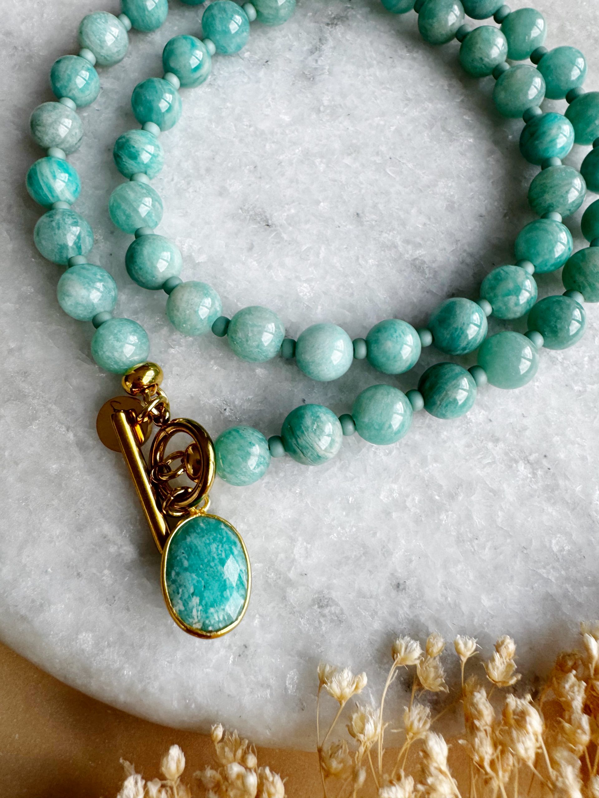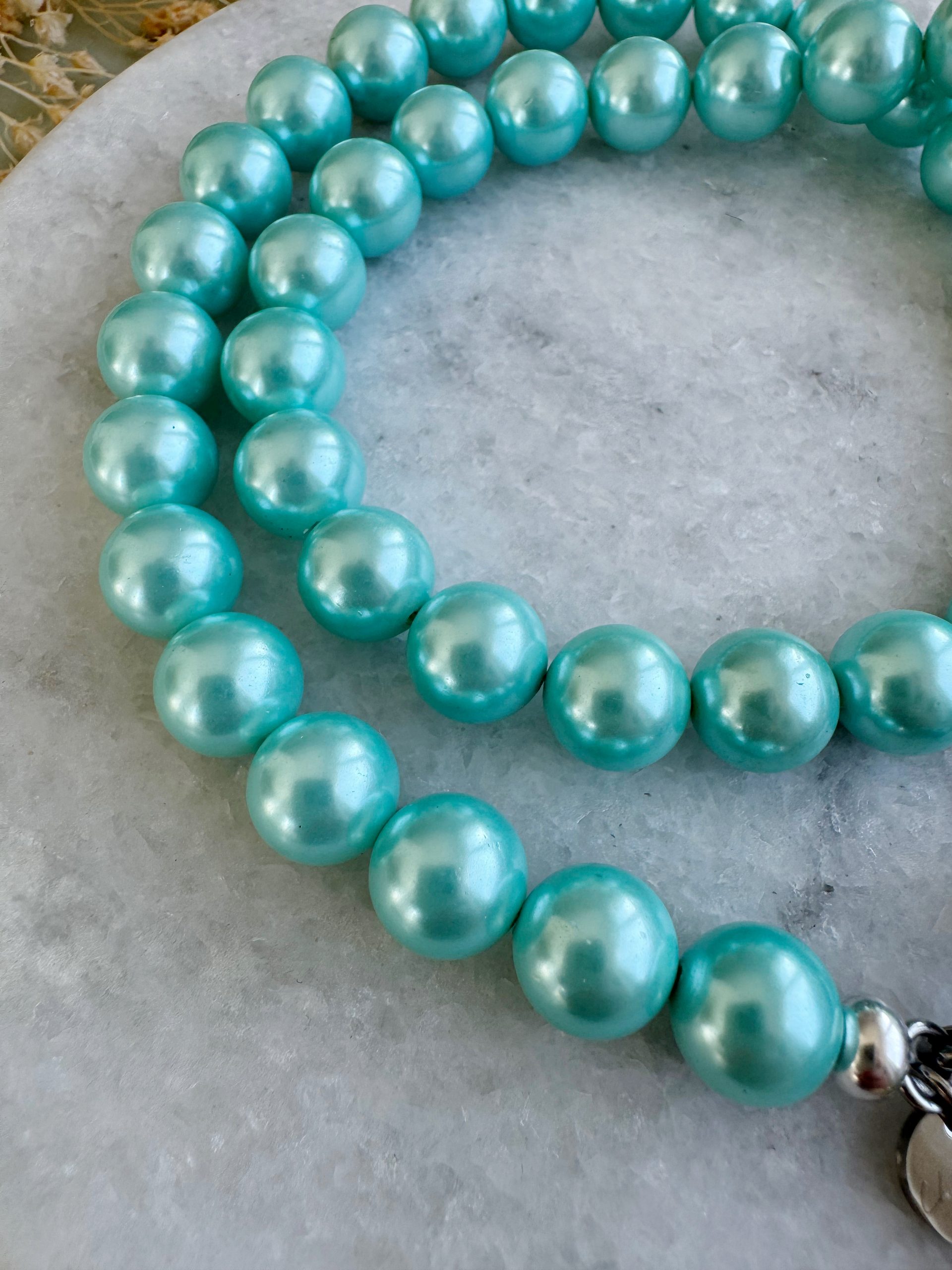„The Azzurro“ zeigt sich als Traum vom grünblauen Karibikmeer. Die feinen Muschelkernperlen reihen sich in ihrem zarten Azur-Ton auffällig um den Hals. Perfekt als einzelne Kette oder im Layering mit feineren Produkten, z.B. aus rostfreiem Edelstahl.