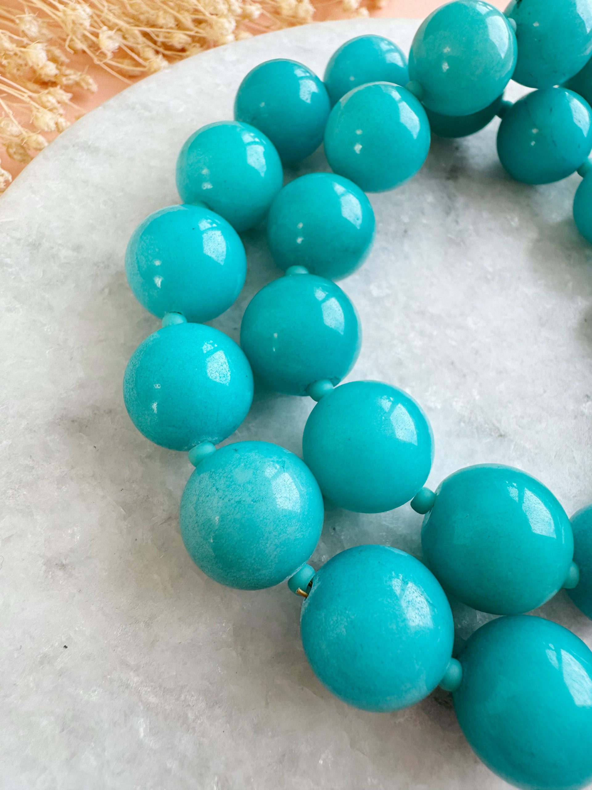 Lust auf Statement? Mit dieser Kette macht ihr alles richtig. Die großen Jade-Perlen kreieren einen unwiderstehlichen Look. Ob kombiniert oder solo, bei dieser Kette ist alles erlaubt.