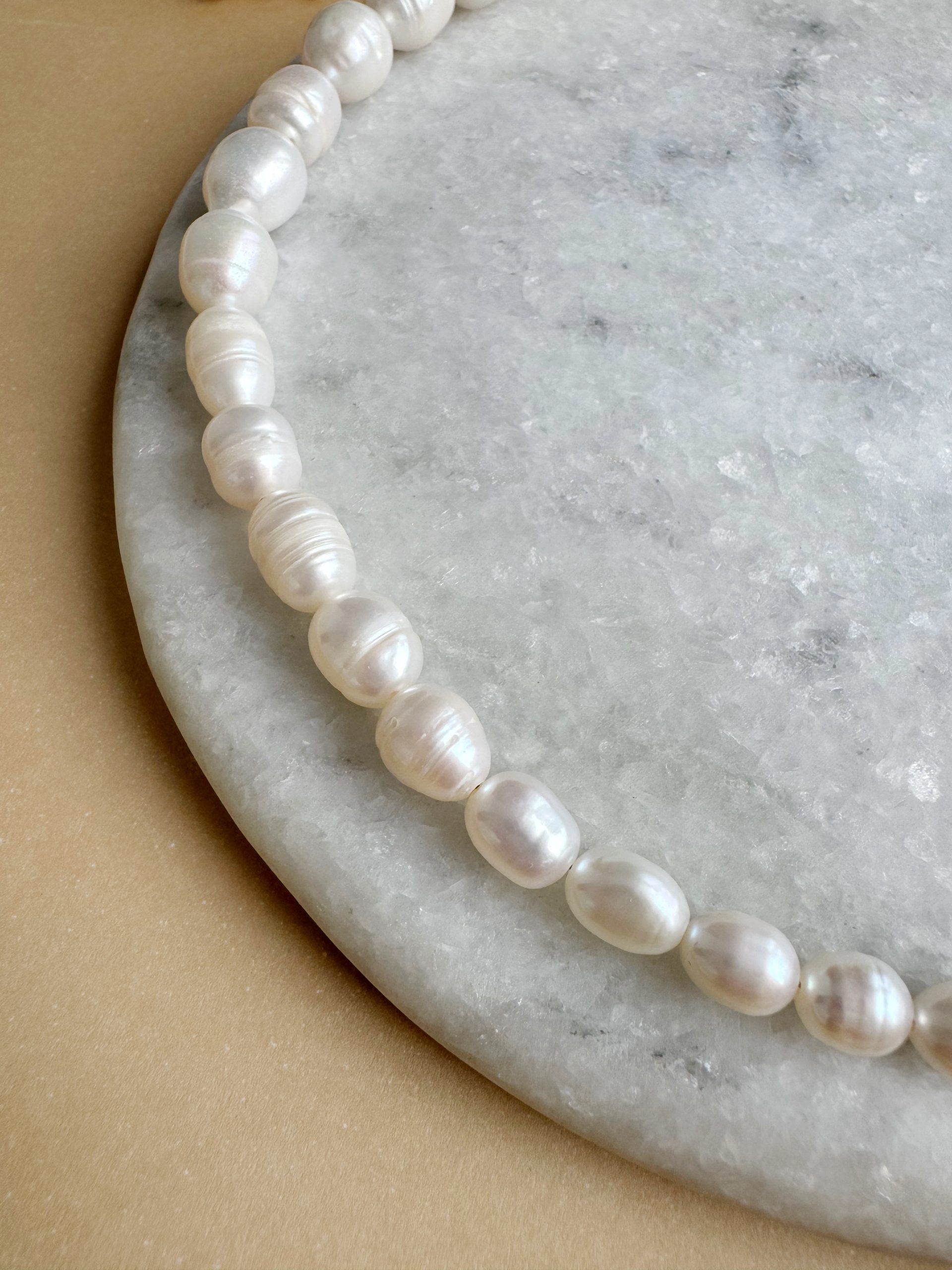 Süßwasserperlen werden in Seen oder kleinen Flüssen aufwändig in Naturmuscheln gezüchtet. Komplett runde Exemplare findet man dabei nur sehr selten. Weitaus häufiger treten sie in ihrer Naturform auf, die entfernt an große Reiskörner erinnert. Größe und Form variieren dabei ebenso wie die Farbgebung. Allen Süßwasserperlen gemeinsam ist aber ihr feiner Perlmuttschimmer, der je nach Lichteinfall unterschiedliche Farben widerspiegelt.
