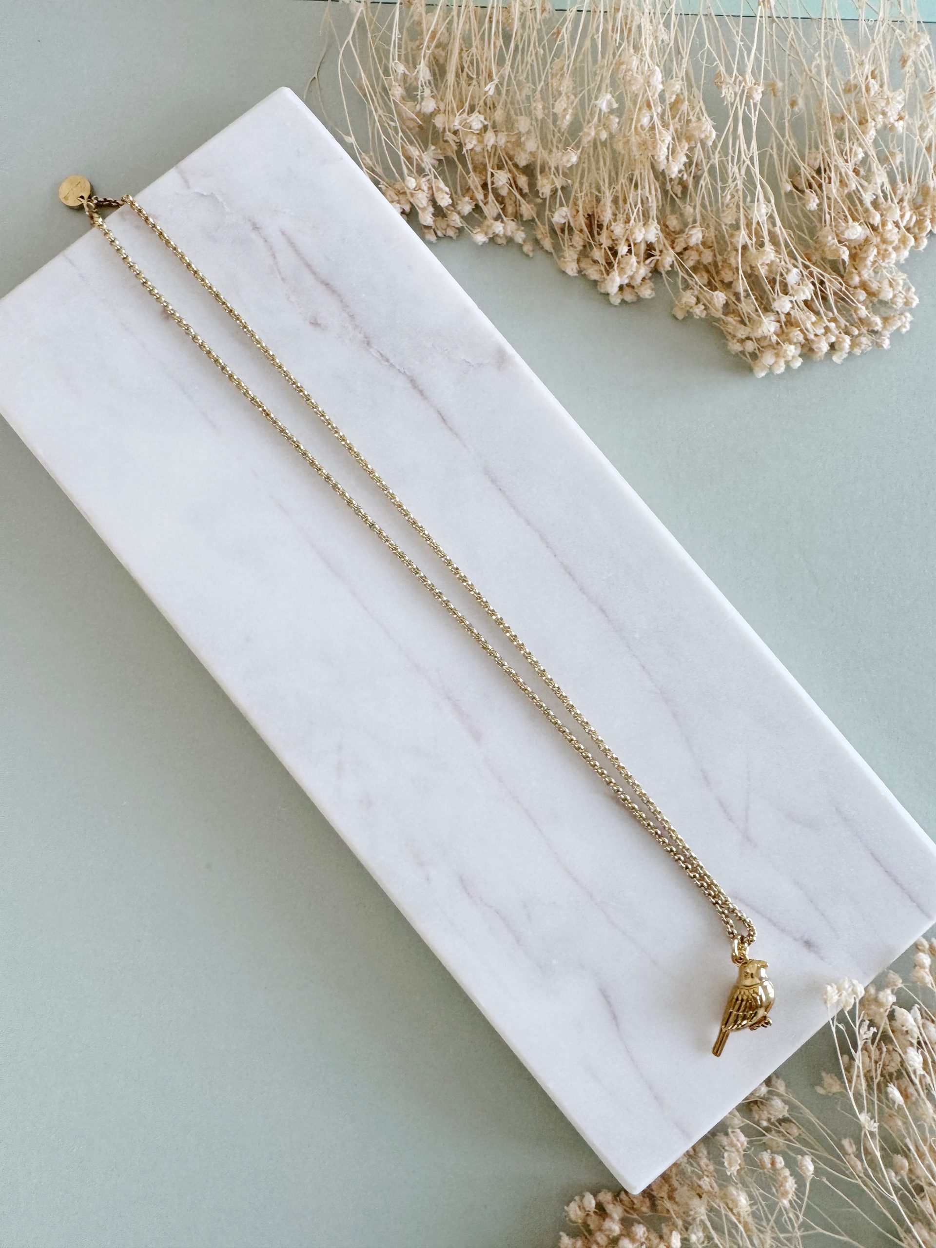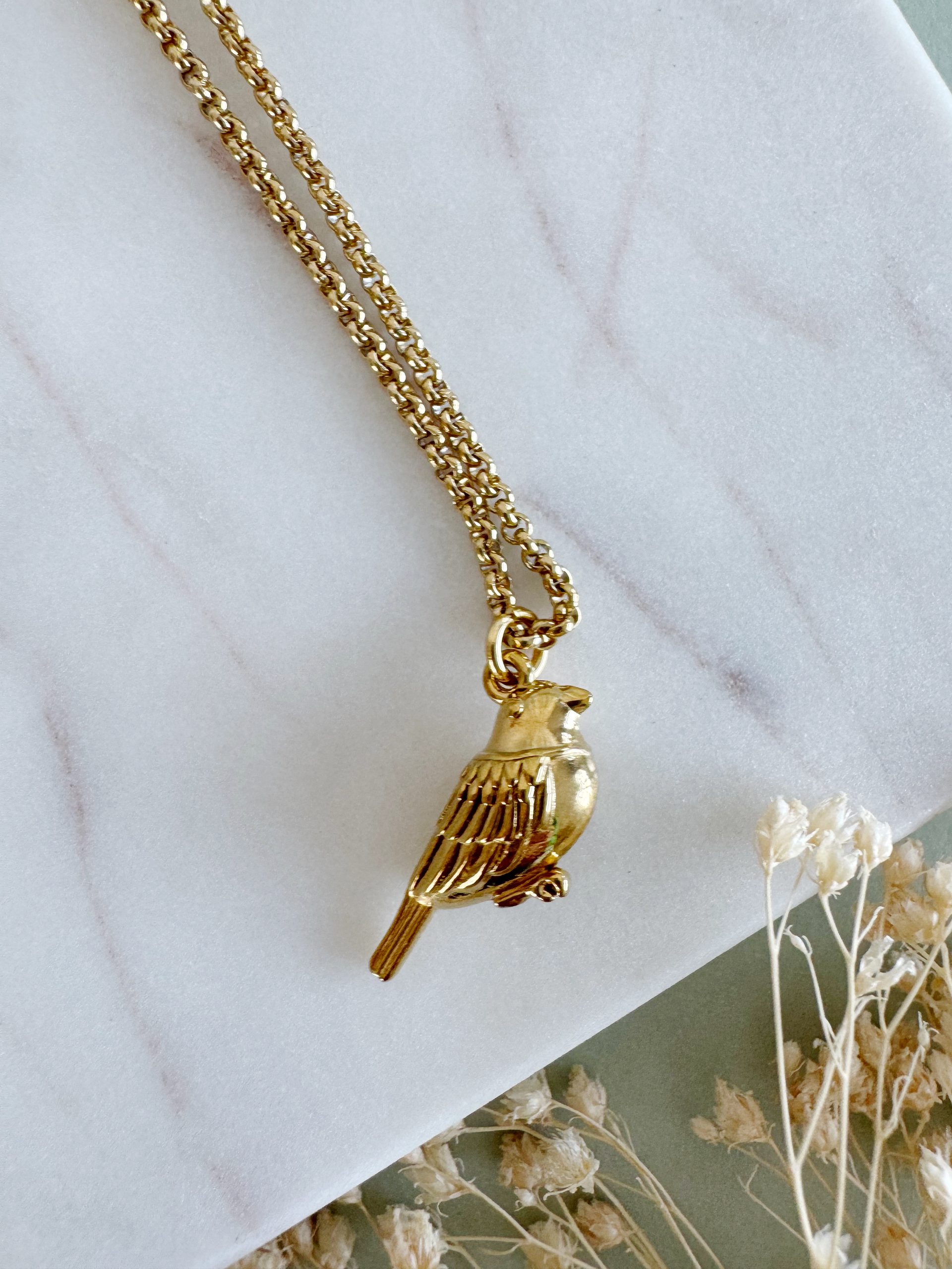 Ein schlichtes aber auffälliges Accessoire gewünscht? Die Kette aus vergoldetem, rostfreien Edelstahl zieht mit ihrem auffälligen Vogel-Anhänger an der Front alle Blicke auf sich.