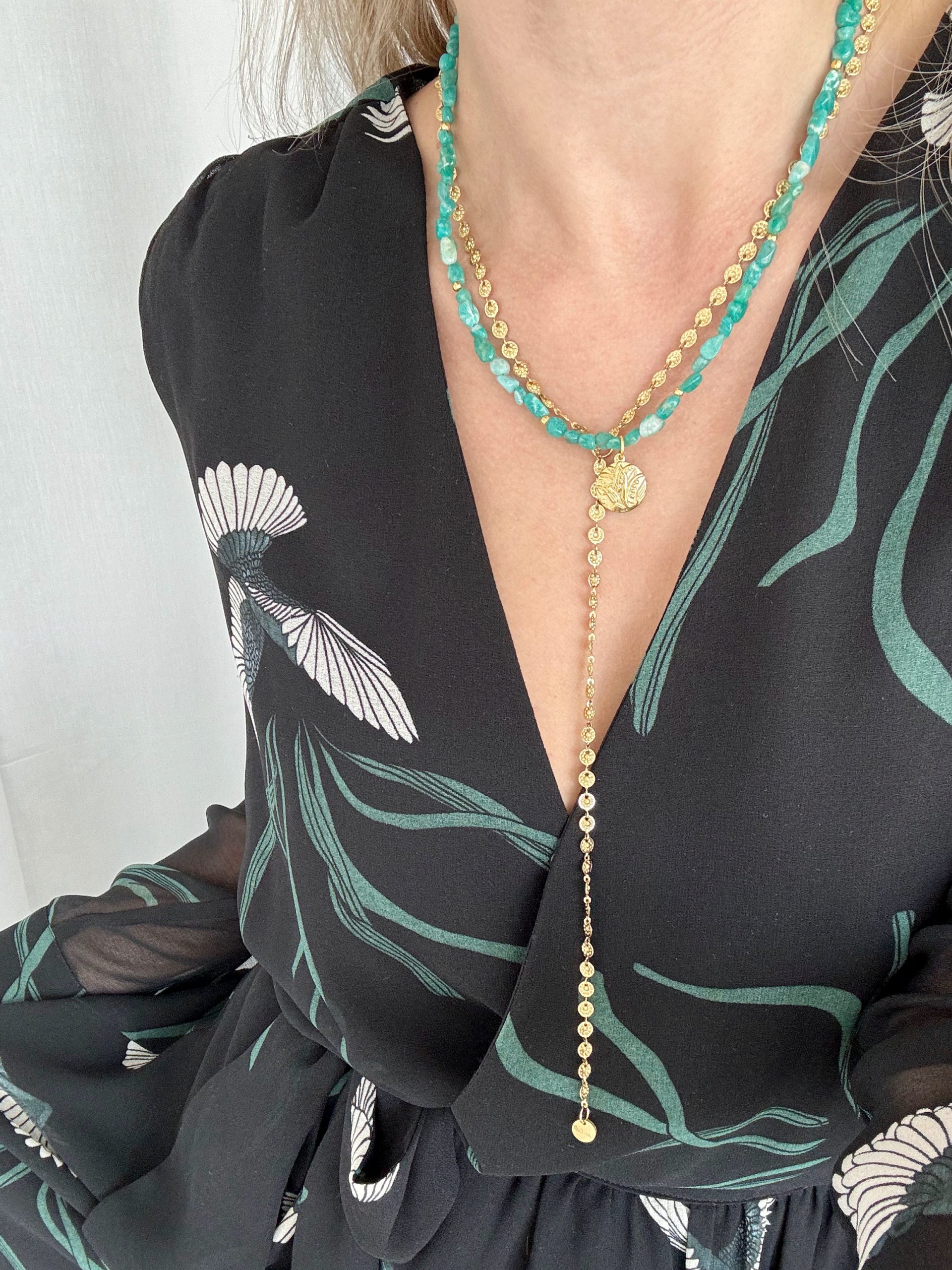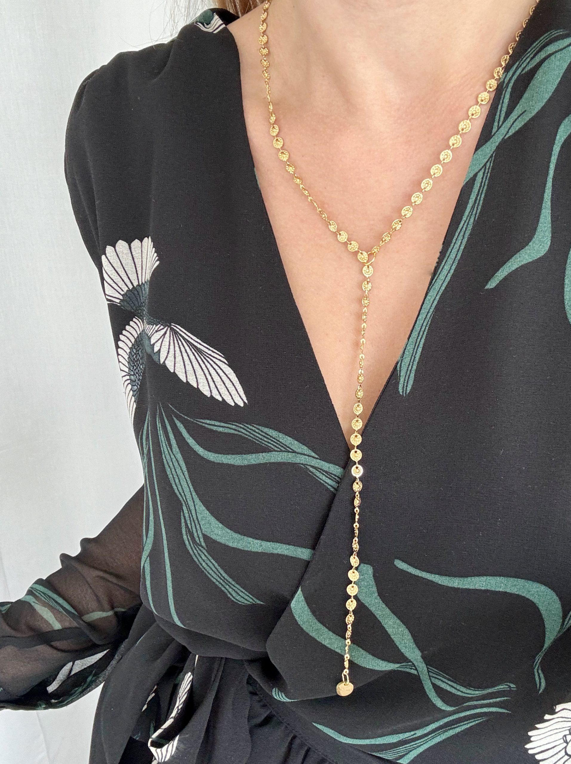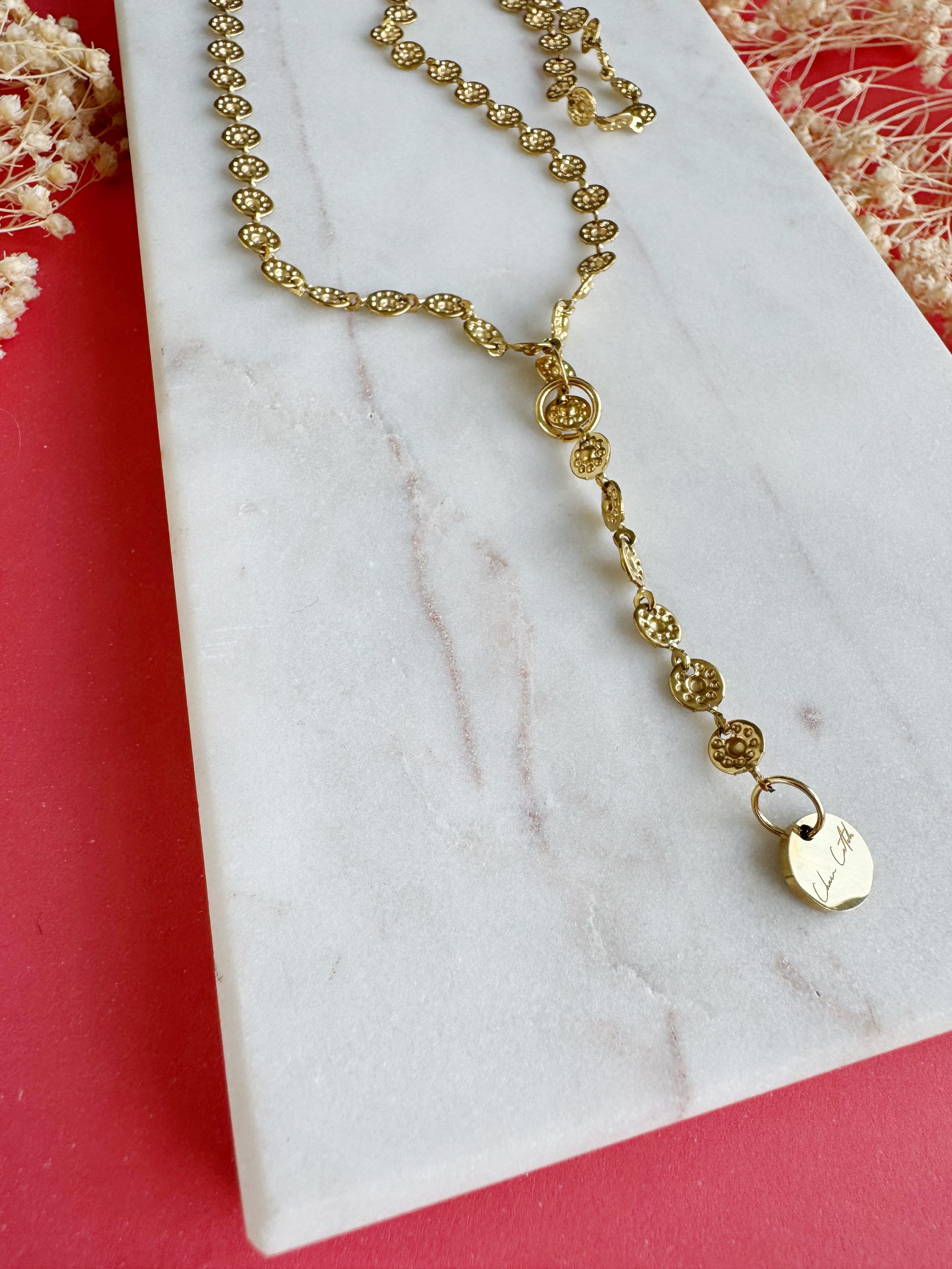 Wochenend-Stimmung die ganze Woche:)zart geschwungene Kette in Y-Form. Als Endloskette einfach über den Kopf ziehen und in die gewünschte Länge bringen. Et voila! Komplett aus rostfreiem Edelstahl gefertigt.