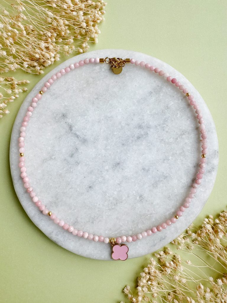 Der Rosenquarz weist meistens eine blassrosa Färbung auf – manchmal etwas intensiver, manchmal fast weißlich. Er kann sowohl transparent als auch opak sein.